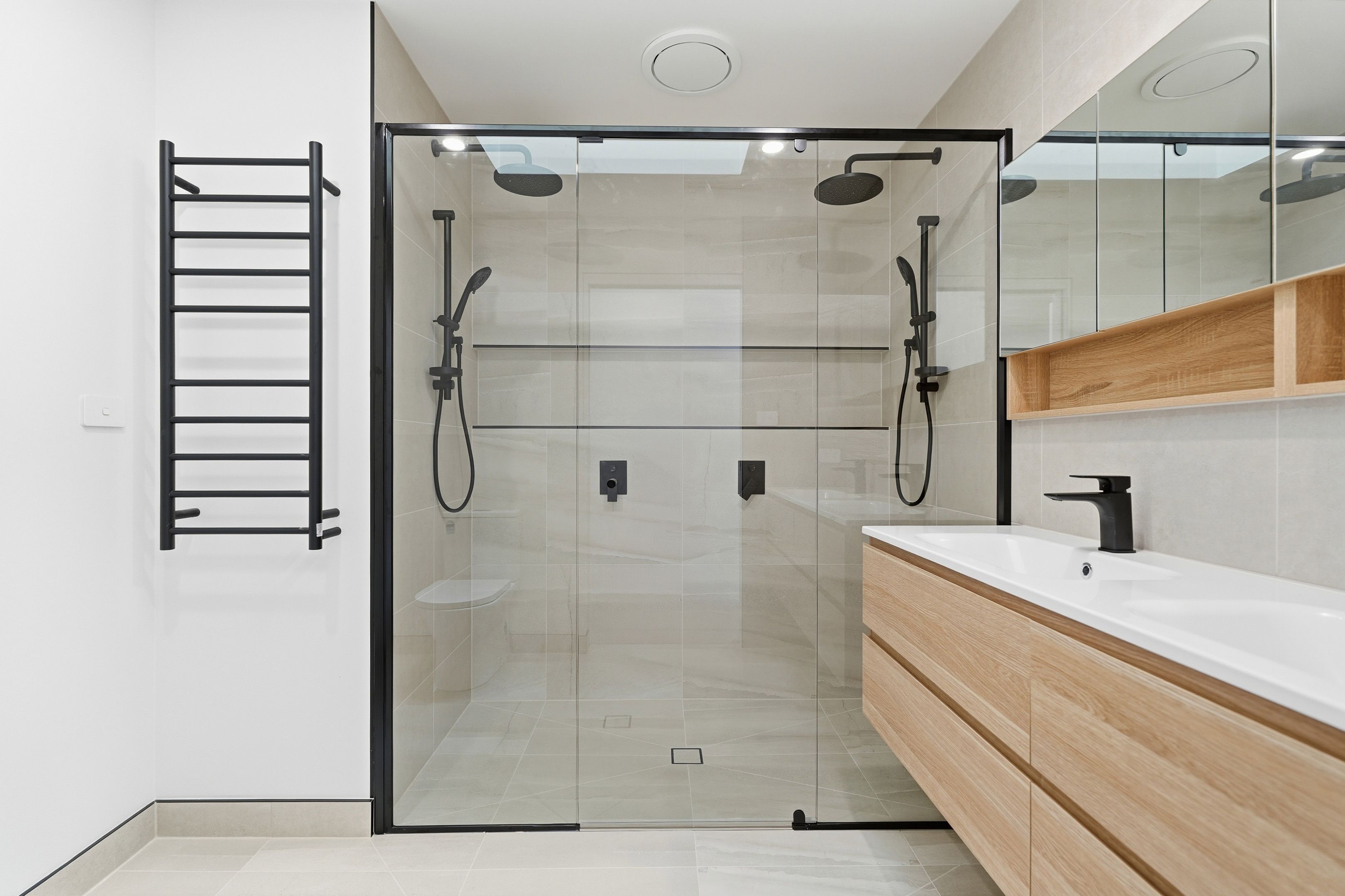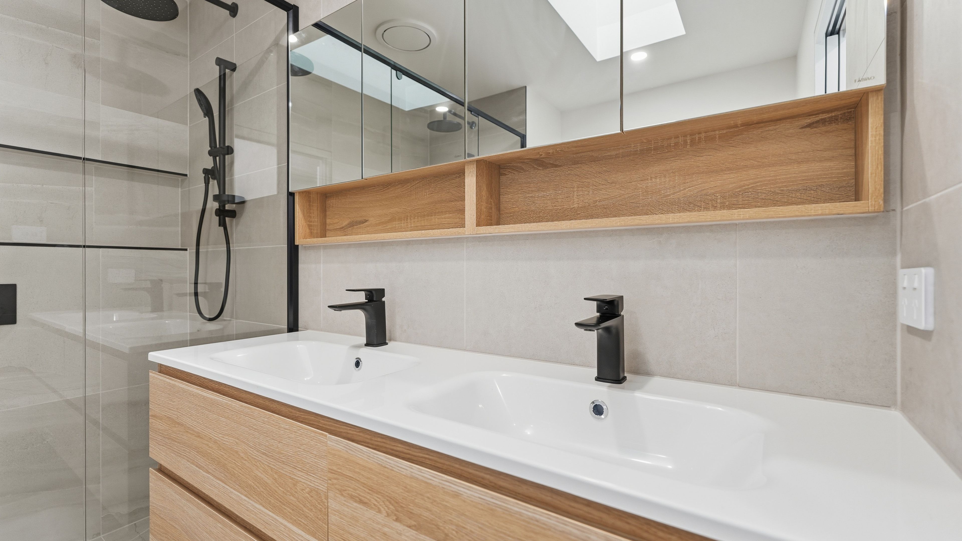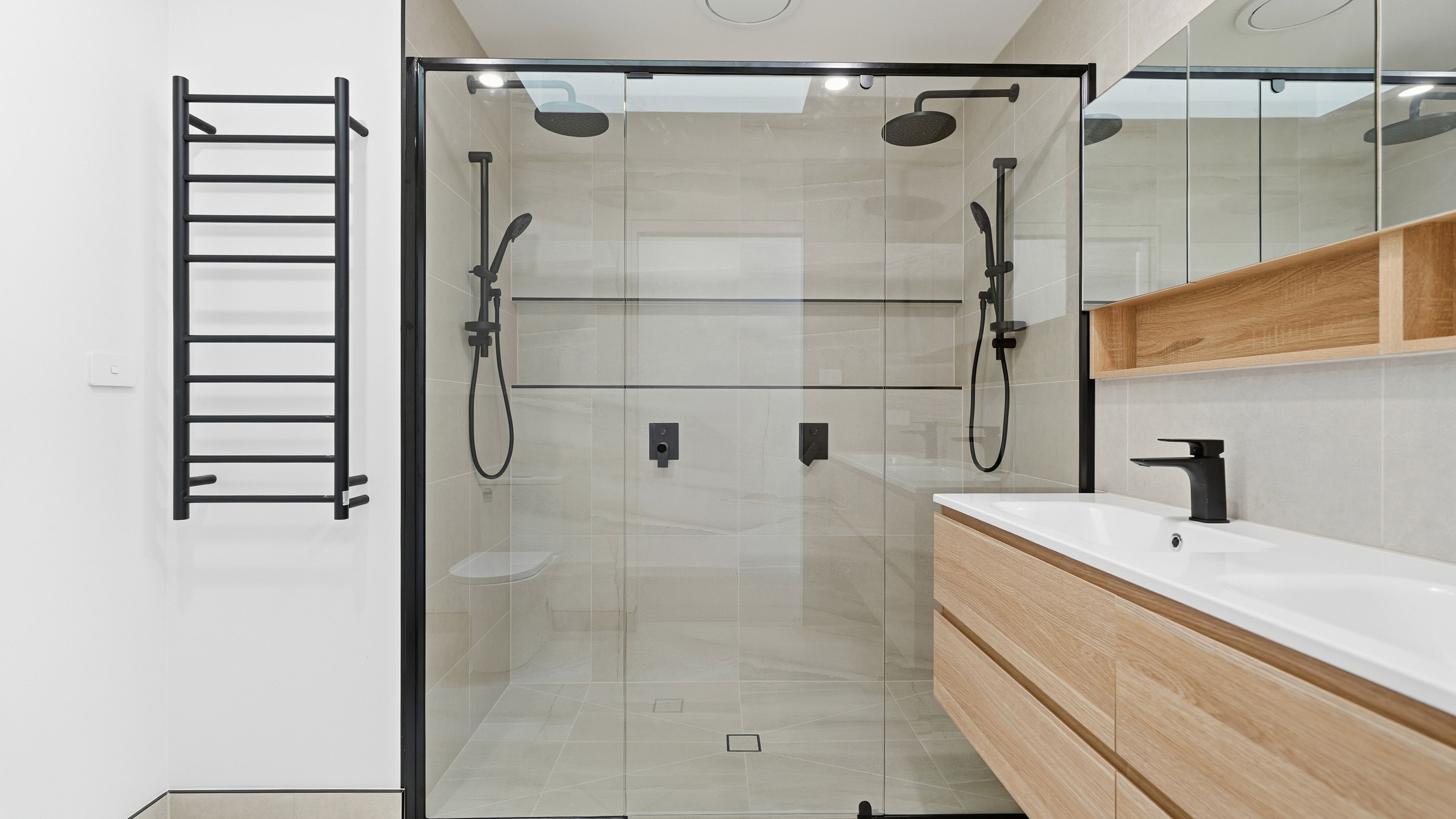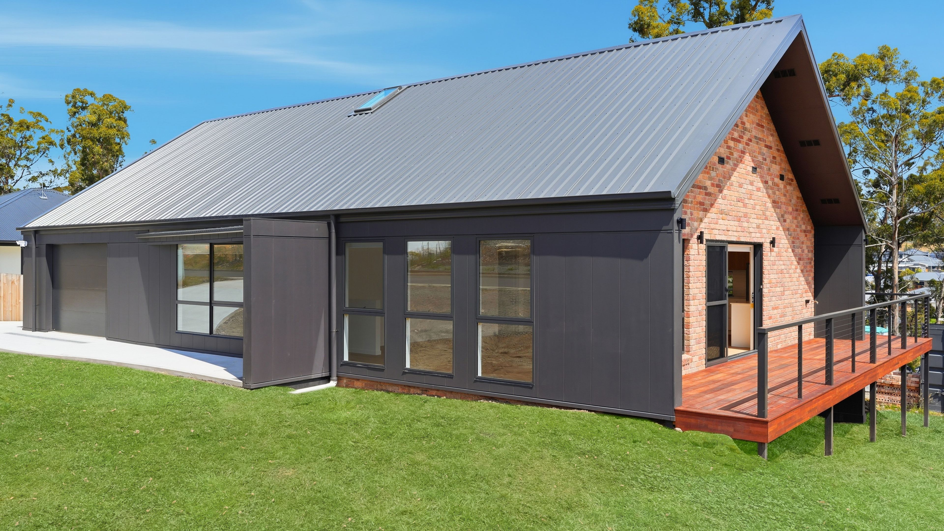 The home’s barn-style form delivers immediate street appeal, elevated through carefully selected materials and refined finishes. A combination of convict-style brickwork and Monument axon cladding creates depth, contrast and texture, resulting in a façade that feels both grounded and modern.