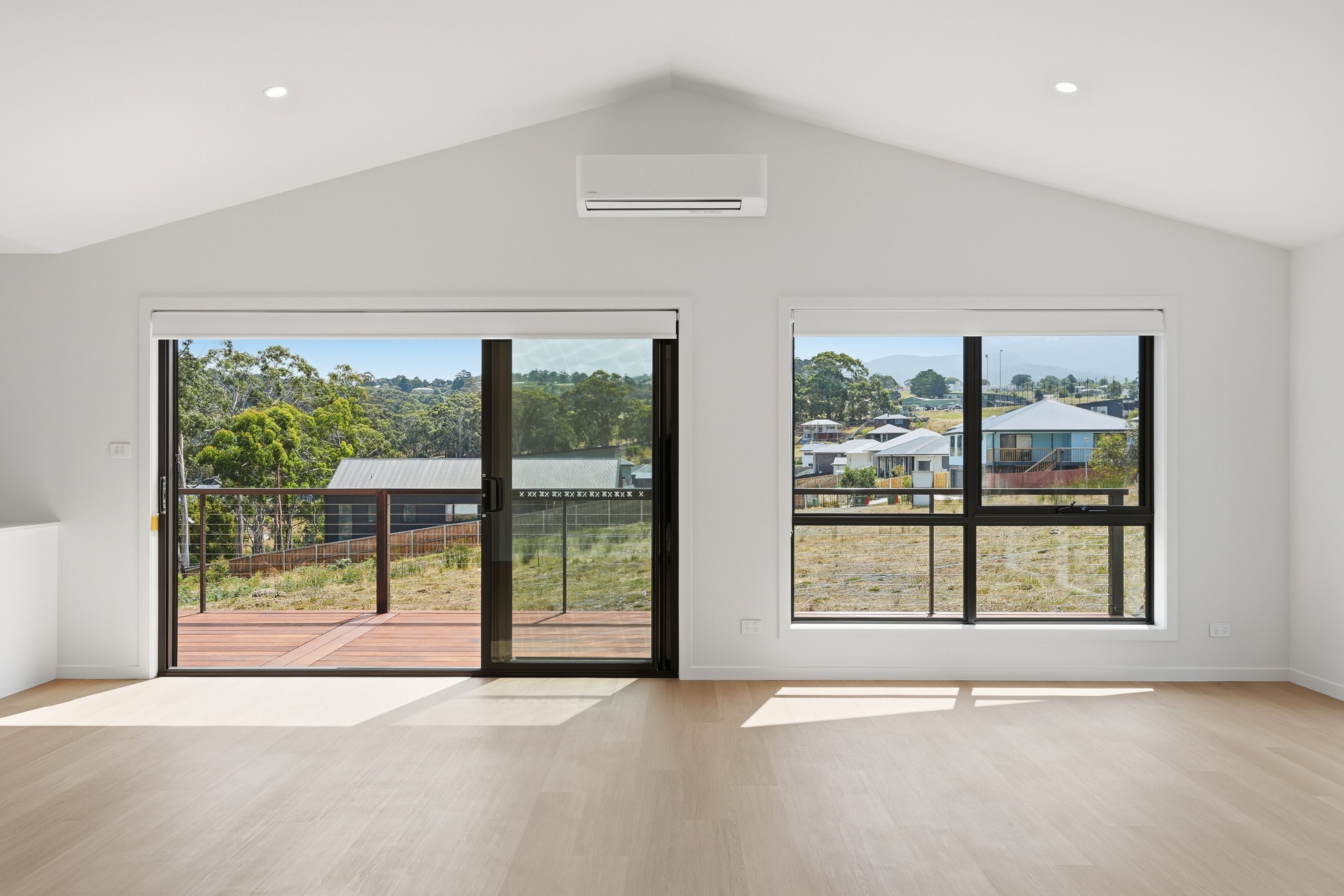 The central living area connects seamlessly to the surrounding deck, extending the home’s footprint and encouraging indoor–outdoor living.