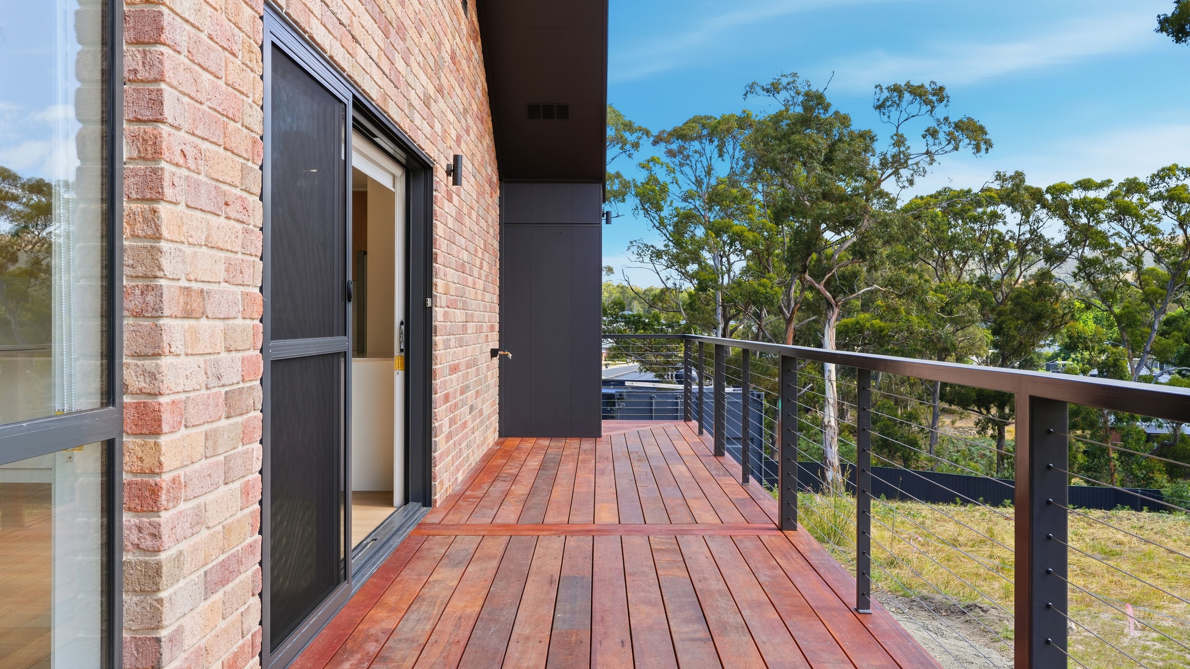Encircling the home is a stunning deck featuring merbau boards, providing warmth and durability while enhancing the architectural design. This outdoor space offers multiple zones for relaxing or entertaining, further elevating the lifestyle appeal of the property.
