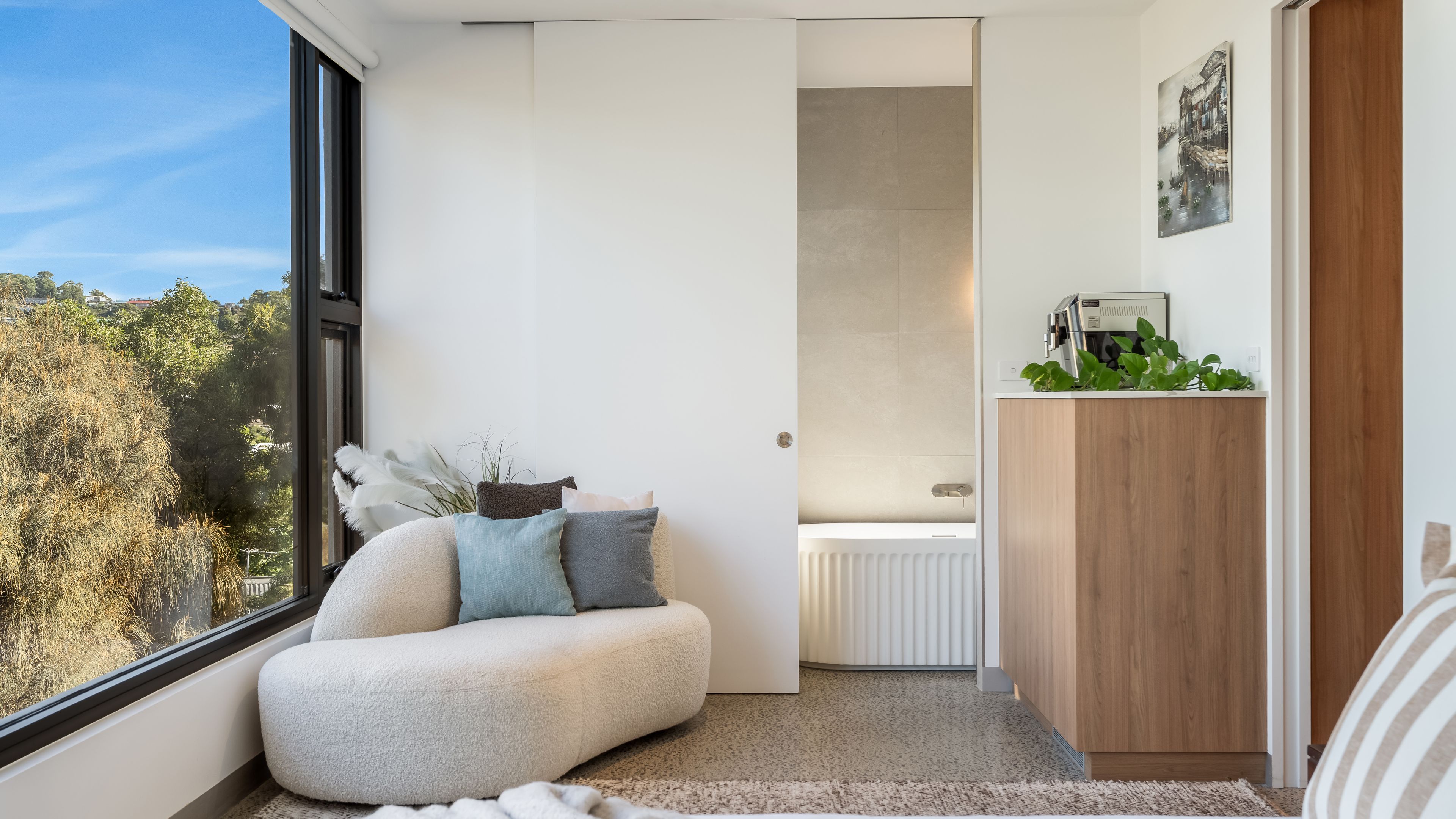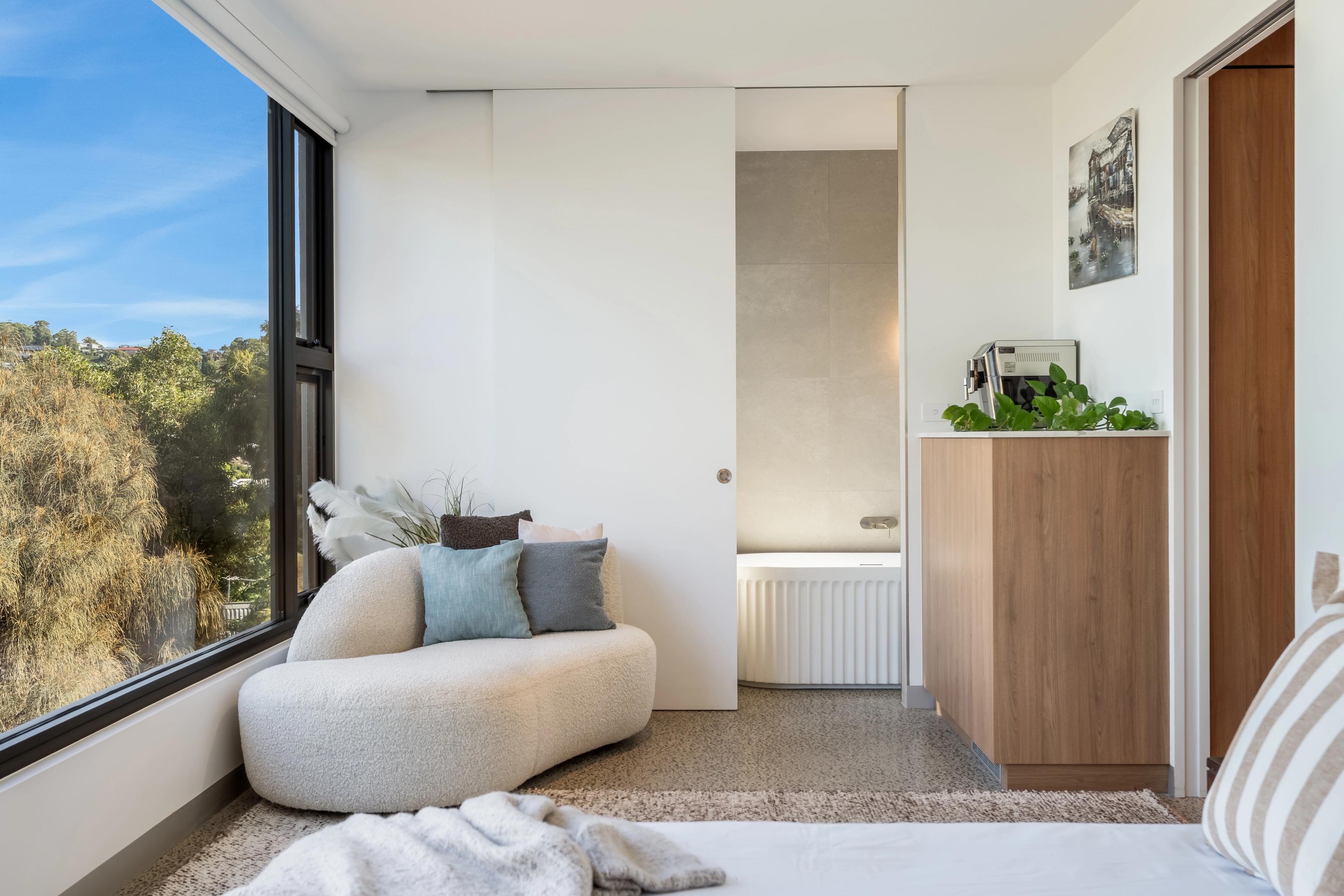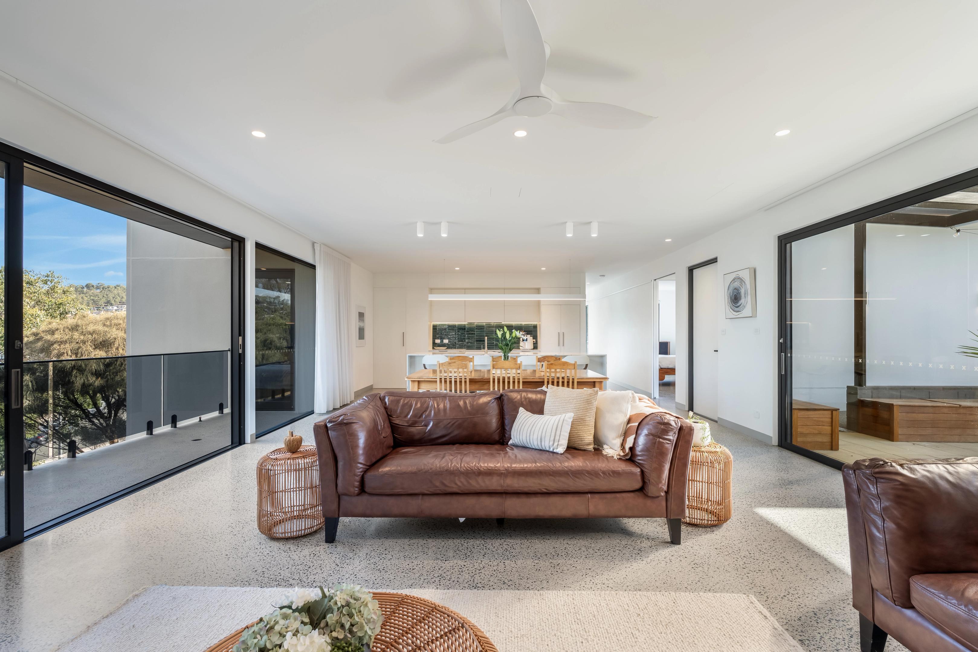 The lower level includes two self-contained studios with private access and breathtaking beachfront outlooks. Designed to complement the main residence, these spaces provide flexibility for extended family, guests or short-stay accommodation.