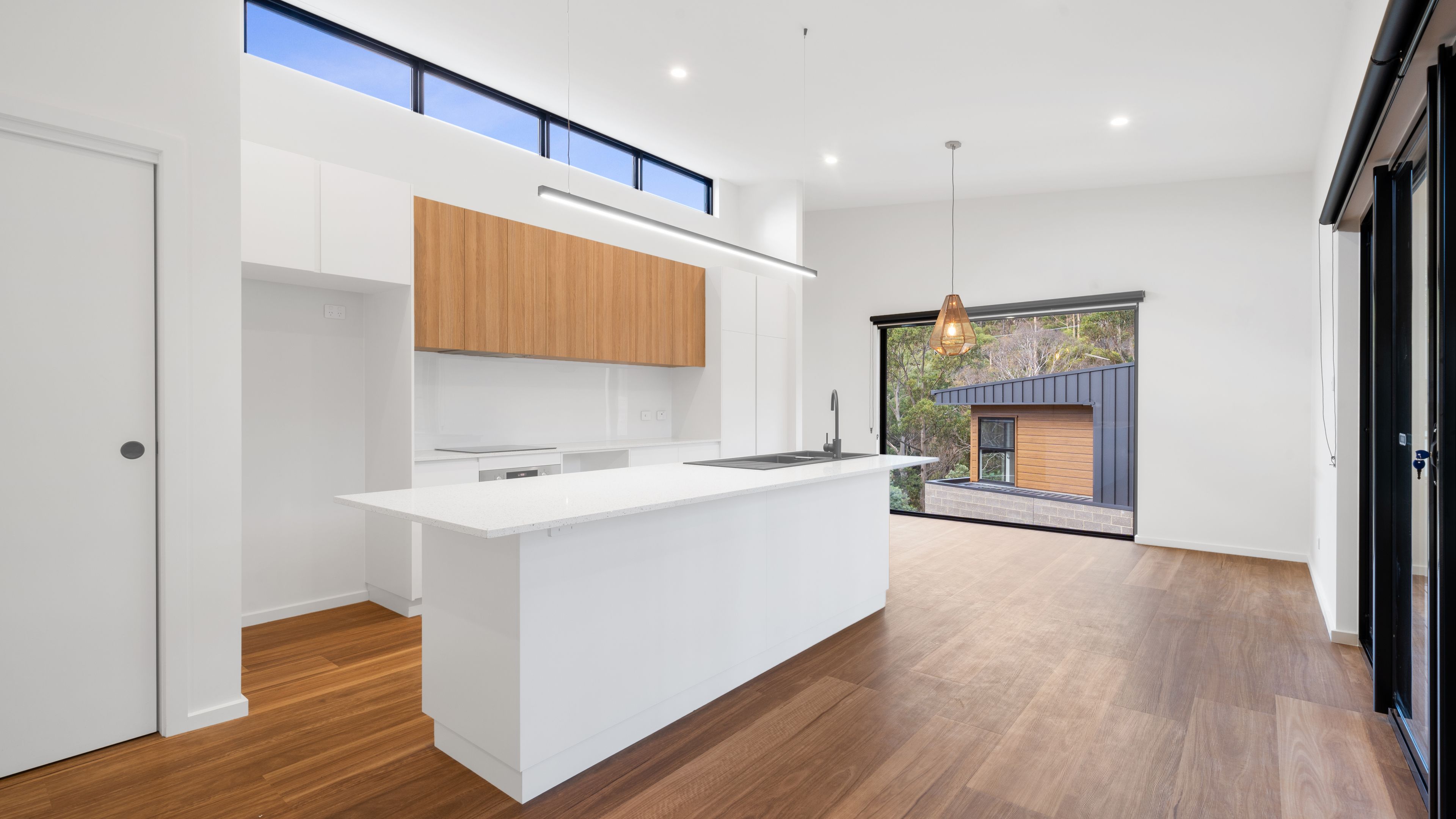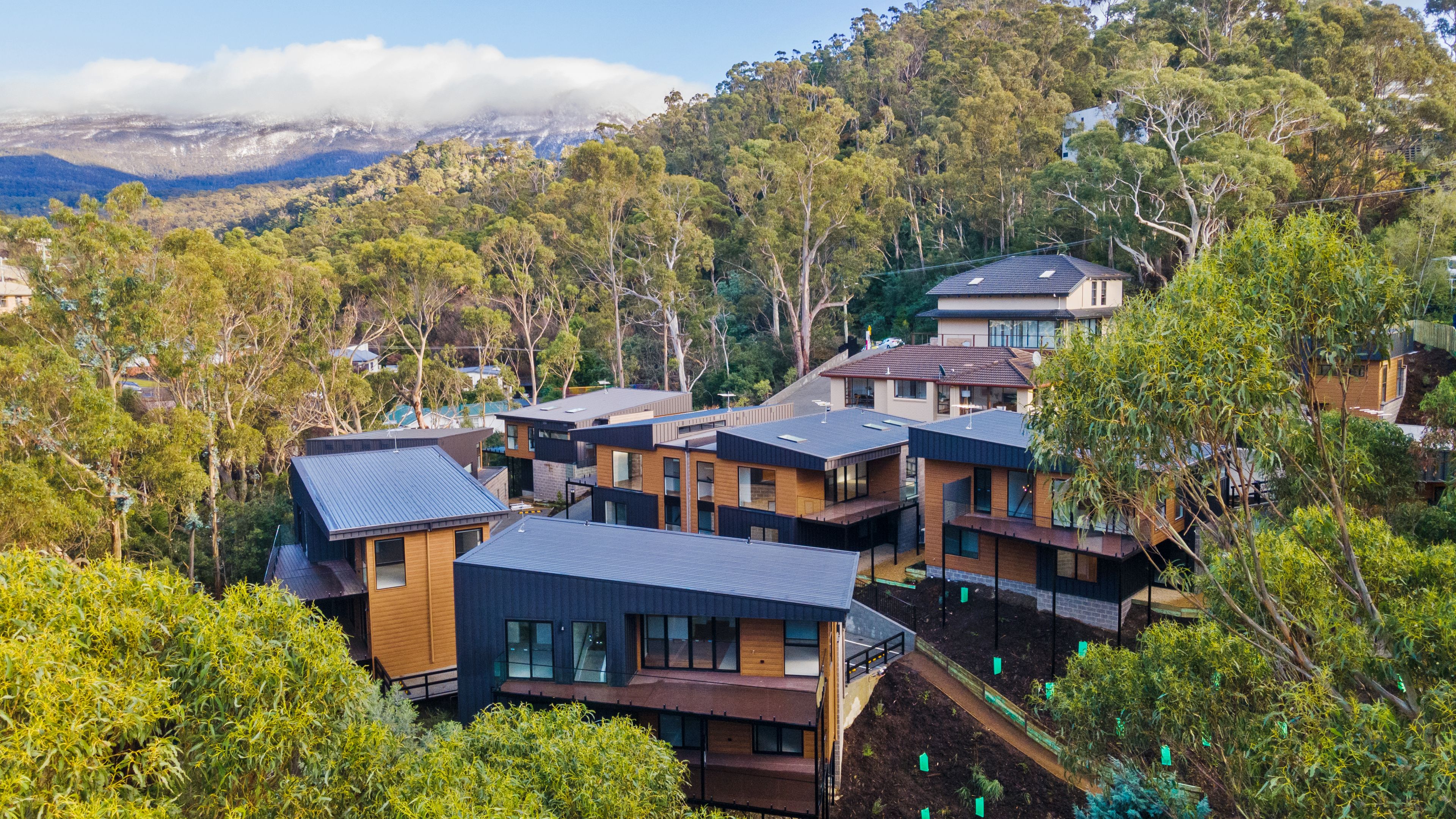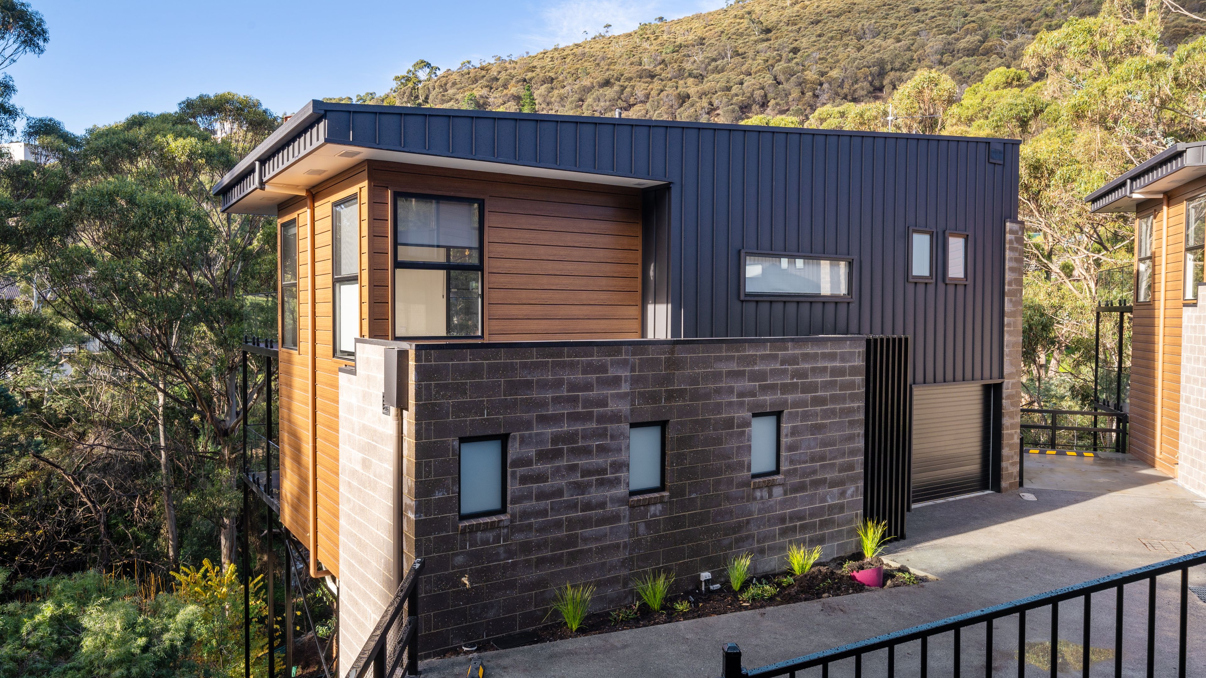 Surrounded by established eucalypts, each residence is carefully positioned to offer privacy, natural light, and a seamless connection to the outdoors. The development blends modern aesthetics with low-maintenance, sustainable living — perfect for today’s Tasmanian lifestyle.